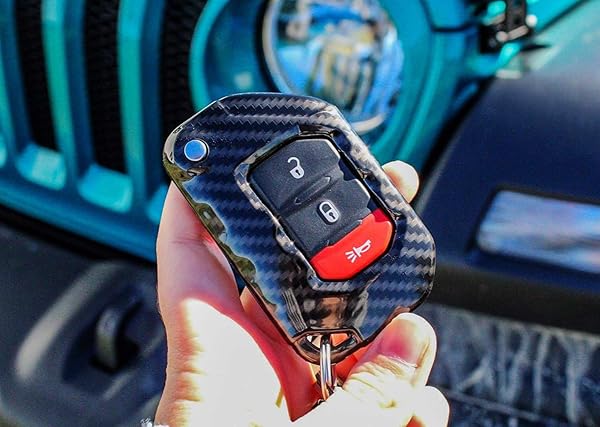 - iJDMTOY Glossy Black Carbon Fiber Pattern Exact Fit Flip Key Fob Shell Cover Compatible with Jeep: 2018-up Wrangler JL and 2020-up Gladiator offers reliable performance and quality- Compatible with Jeep: 2018-up Wrangler JL/JLU and 2020-up Gladiator JT (fit the 3 or 4 buttons flip folding blade key fob)- To avoid buying the wrong key fob holder and wasting time and money, please compare your car key with the gallery lifestyle pictures
