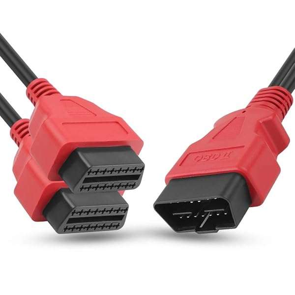 * iKKEGOL 30cm/12 inch Ultra Low Profile OBDII Extension Cable, OBD II 2 Y Splitter Cable,1 Male to 2 Dual Female Y J1962 Ports Extension Connector Adapter Red: "a nice solution for 2 separate things simultaneously * Your car MIGHT NOT let you run 2 separate things of the OBD simultaneously,but this great item allows you to do multiple things simultaneously * 1x Male to 2 x Female Extension Cable * OBD II cable splitter * Signal splitter