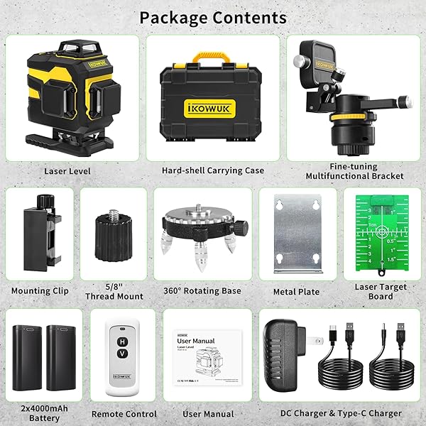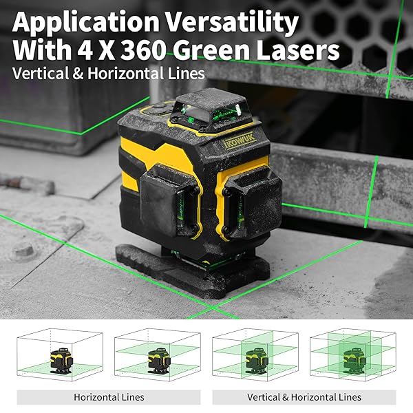 - IKOVWUK 4x360 Laser Level Pro Kit, Self-leveling Tool for Construction, Tiling Floor & Picture Hanging, 4D Cross Line Laser Level with Fine-tuning Bracket, 16 Lines Laser level with 2*4000mAh Battery offers reliable performance and quality