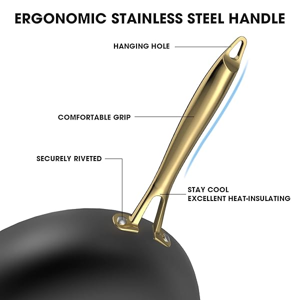 Imarku Non Stick Frying Pans Set 2 Pcs 8 Inch 10 Inch Professional Cast Iron Skillets Honeycomb Long Lasting Gold Handle Oven Safe