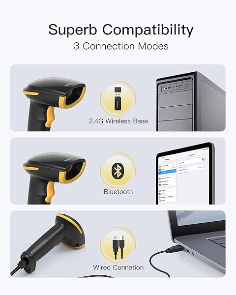 - Inateck Bluetooth Barcode Scanner, 1D 2D QR Code Scanner Wireless with 2.4G, Bluetooth, and USB 3-in-1, 2600mAh Battery, Includes APP and SDK, Support Screen Scanning, BCST-23 Black with reliable performance and quality- Super Decoding Capability: Inateck barcode scanner utilizing a 300,000-pixel 2D module for recognition, it supports most 1D and 2D barcodes. It quickly reads blurry, damaged, dirty, wrinkled, and distorted barcodes under strong and dim lighting conditions (Inverte