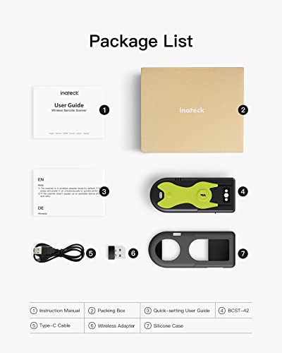 * Inateck Bluetooth Scanner 2D Barcode Scanner 2.4Ghz USB Adapter, Screen Scanning, Exclusive Shortcuts, BCST-42: with the built-in bluetooth 5.0 module * This Bluetooth scanner can be connected with your mobile phone * Tablet and computer * It works with Android * Windows
