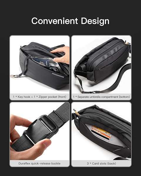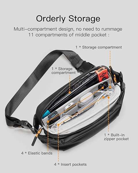 * Inateck Sling Bag X, Multi-pocket Crossbody Shoulder Chest Bag with Adjustable Shoulder Strap, Water-resistant Waist Fanny Pack for Men, Women, Travel, Daily Use, Cycling, Hiking, Black, Large: size information: the outer dimensions of this bag is 34 x 15 x 8 cm (13.4 x 5.9 x 3.1 inch) * Since the bag is irregular in shape and has compartments inside * The internal capacity cannot be measured * The volume of the external dimensions does not represent the internal capacity * Please refer to the