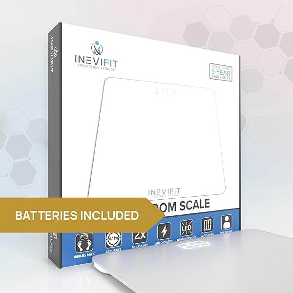 - INEVIFIT Bathroom Scale, Highly Accurate Digital Bathroom Body Scale, Measures Weight up to 400 lbs. Includes Batteries: reliable performance and quality- ENJOY TRACKING YOUR FITNESS JOURNEY: This smart digital scale tracks- POWERFUL FREE APP: Our smartphone app is simple to use, supports- PREMIUM QUALITY: Upgraded auto-calibrating sensors for precise and- DELIGHTFUL EXPERIENCE: Designed here in Southern California to