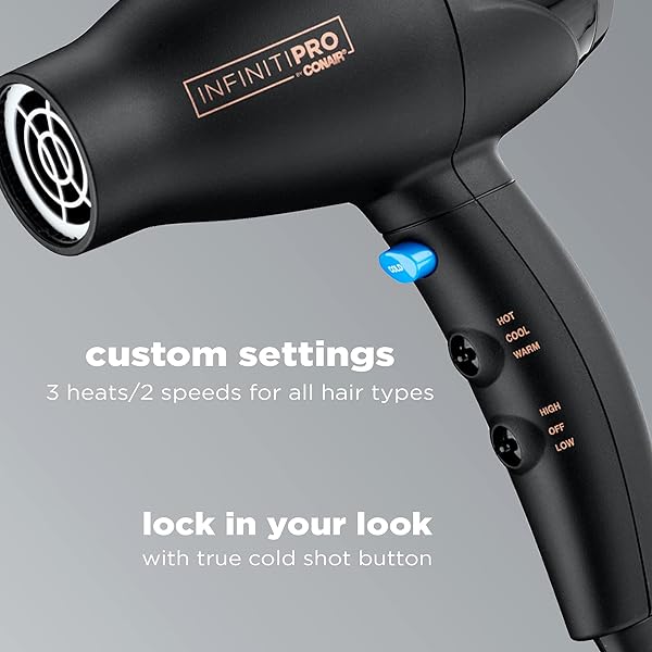 - INFINITI PRO CONAIR Travel Hair Dryer, 1600W Mighty Mini Compact Blow Dryer with Concentrator Attachment, Lightweight Professional AC Motor for Fast Drying, 3 Heat & 2 Speed Settings, Black offers reliable performance and quality- Mini Hair Dryer: This hair dryer packs professional power in a sleek and compact design that's perfect for salon results on the go; Throw it in your suitcase or weekend bag for the perfect lightweight travel companion