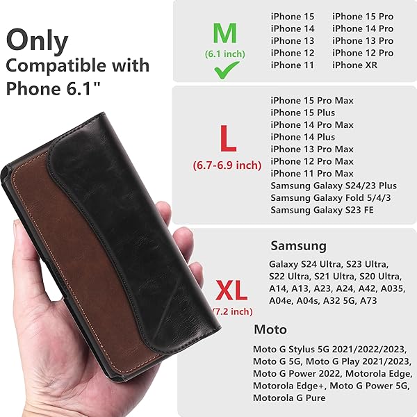 - INGIDO Holster for iPhone 15 15 Pro 14, 14 Pro, 13 Pro, 13, 12 Pro, 12, iPhone 11, XR - Premium Cell Phone Case with Belt Clip [Magnetic Closure] ID Card Holder Pouch, Brownish-Black, Medium with reliable performance and quality- Wide CompatibilityThis leather phone pouch with belt clip is widely compatible with iPhone 15, iPhone 15 Pro, iPhone 14, iPhone 14 Pro, iPhone 13, iPhone 13 Pro, iPhone 12, iPhone 12 Pro, iPhone 11, iPhone 11 Pro, iPhone XR, Samsung Galaxy S24, Samsung Ga