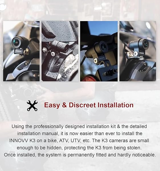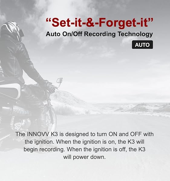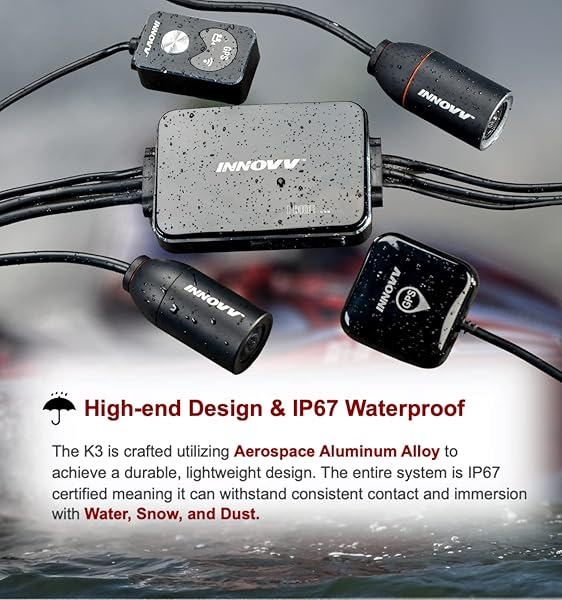 - INNOVV K3 Dual Channel Motorcyle Motocam with WiFi, GPS, Parking Mode and IP67 Water-Resistant (microSD Card not Included) provides reliable performance and quality- WATER RESISTANT DESIGN: A durable and efficient system for toughing out the harsh elements.- SMART PARKING MODE: The K3s smart power supply module triggers parking mode automatically and monitors your motorcycle when you are away.