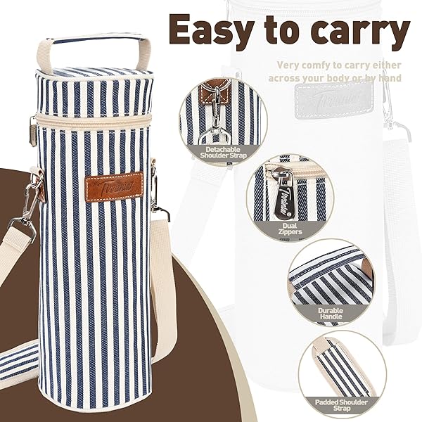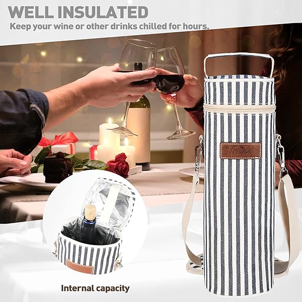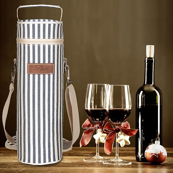 * Tirrinia Single Wine Cooler Bags - Insulated & Padded Portable Wine Gift Tote Carrier for Travel, BYOB Restaurant, Wine Tasting, Party, Great Gift for Wine Lover, Blue Stripe: single wine bottle tote: this wine tote bag features a shoulder strap and zipper * Making it the perfect wine carrier for travel * Picnics * Beach trips * And outdoor concerts