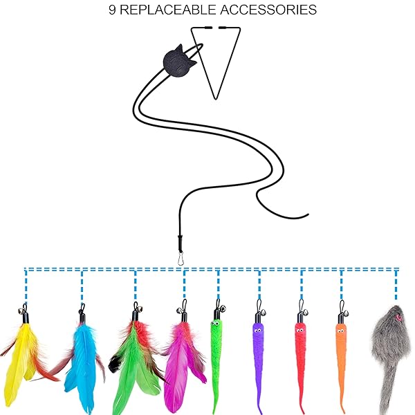 - Interactive Cat Toys Set Teaser Feather Wand, Hanging Door Toy & Multiple Attachments - Telescopic Cat Fishing Pole Toy for Kitten offers reliable performance and quality- All-in-One Interactive Cat Toys Set: Includes two engaging wand toys, a versatile hanging door frame cat toy, and a variety of feather, bug, and mouse attachments for endless play possibilities