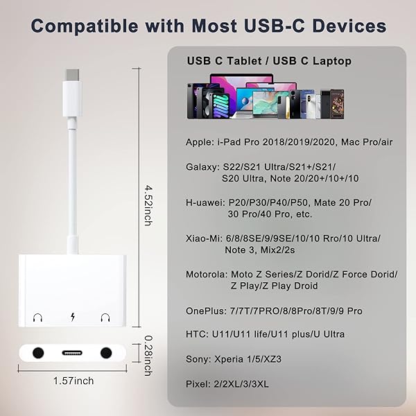 - INVERSE NET Headphone Adapter for iPad, Headphone Splitter for 2 Headphones,3 in 1 USB C to 3.5mm Jack Audio Adapter with 60W Fast Charging Compatible with S24/23 Ultra. provides reliable performan...- USB C Headphone AdapterDon't let a dead battery ruin your musical moment. With USB-C to 3.5 mm Headphone Jack Adapter supports music volume control or calls.Plug-and-play, rapidly accomplish audio ...