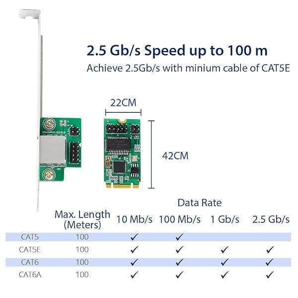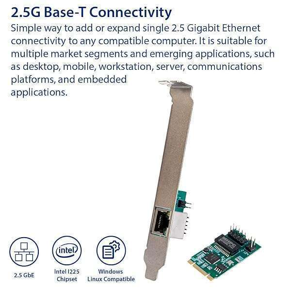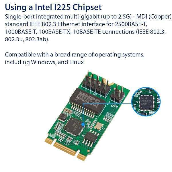 * IO CREST 2.5 Gigabit Ethernet M.2 M+B Key Interface Card 10/100/1000/25000 Mbps RJ45 LAN Intel I225 Chipset,Black,SY-PEX24075: this m.2 m+b key controller with base-t copper networking interface * Provides compact * Single-port integrated multi-gigabit (up to 2.5G) * MDI (Copper) standard IEEE 802.3 Ethernet interface for 2500BASE-T * 1000BASE-T