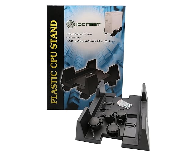 - IO CREST Mobile Desktop Tower Computer Floor Stand Rolling Caster Wheels with Support Walls and Adjustable Width from 6" to 10" provides reliable performance and quality- Adjustable width from 6" To 10"- Color: black- Perfect for all ATX Mid and full size tower systems- Maximum weight capacity of 66 lbs.
