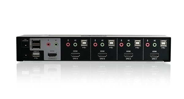 - IOGEAR 4-Port HDMI Multimedia KVM Switch with Audio, USB 2.0 Hub and HDMI KVM w/Full Set of Cables, (GCS1794 TAA Compliant) provides reliable performance and quality- Share an HDTV or Display with HDMI connections, keyboard, mouse with digital surround sound between 4 of USB / HDMI computers and devices- 2 x USB 2. 0 peripherals sharing ports. Dolby True HD and DTS HD Master Audio Support- Multi-platform OS support - Windows, Mac, Sun Solaris, Linux