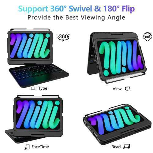 - besky Keyboard Case for iPad mini 7 A17 Pro 2024 & Mini 6th Generation 2021 8.3-inch 6th Generation, 360 Rotatable Touchpad Keyboard Case, for iPad mini 7th 6th Generation with Pencil Holder, Black...- iPad Mini 6th Gen Compatibility Model This iPad Mini keyboard case is designed for iPad Mini A17 Pro 7th Generation 2024 8.3 inchModel: A2993/A2995/A2996 & iPad Mini 6th generation 2021 8.3 inches ...