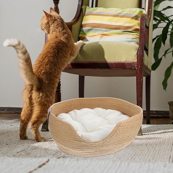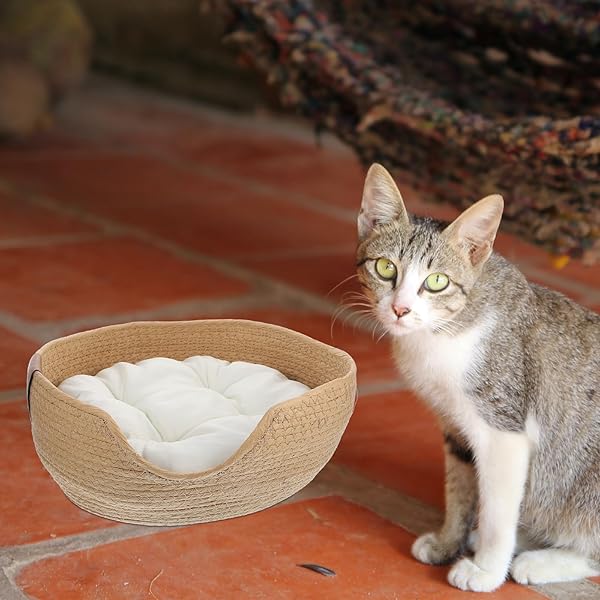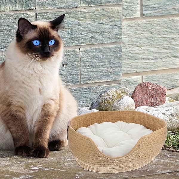 - Ipetboom Woven Cat Bed, 13.4x5.1 Warm Cute Sleeping Nest Basket, Lovely Calming Round Soft Litter Mat Cushion for Pets to Sharpen Claws offers reliable performance and quality- Core Breathability: Crafted from natural rattan, this summer pet nest offers superior ventilation to keep your small pets cool and comfortable, ideal for year-round use