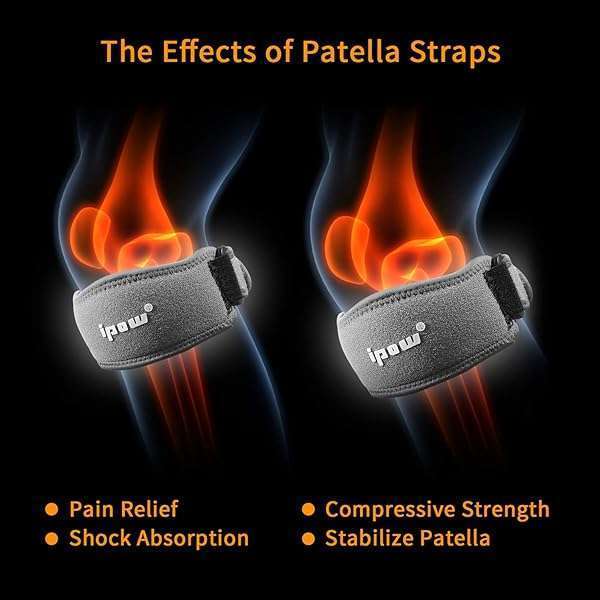 - IPOW 2 Pack Thickened Pad & Wide Patella Knee Strap, Pain Relief Patellar Tendon Support, Adjustable Brace Band for Basketball, Running, Jumpers Knee, Volleyball, Tendonitis, Arthritis offers reliable performance and quality- Absorb Shocks & Relieve Pain Resilient Compression Pad in the strap snugly holds the patellar around the knee and absorbs the shocks. Reduce the pain associated with patellar tendonitis, jumper's knee, runner's knee, chondromalacia