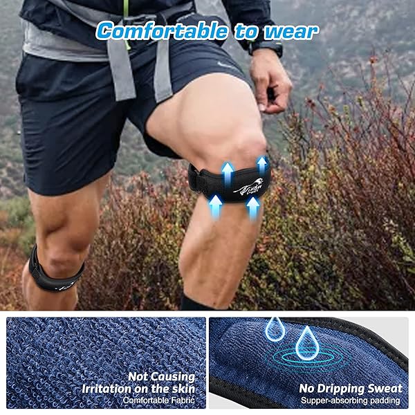 * IPOW 2 PACK Embroidery Patellar Tendon Support Strap with Thickened Pad, Knee Pain Relief & Patella Stabilizer Knee Strap, knee Support for Women and Men, Knee Braces for Running, Working Out, Weightlifting, ArthritisOsgood Schlatter, Black: thickened eva padding & knee pain relief * Our upgraded knee bands feature thickened EVA padding * Which are "rubber-like" in softness and flexibility * Effectively deliver constant pressure at the area and stabilize your kneecap * Suitable for knee pain