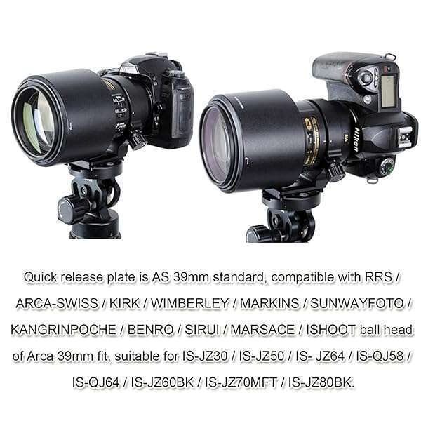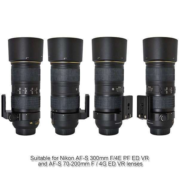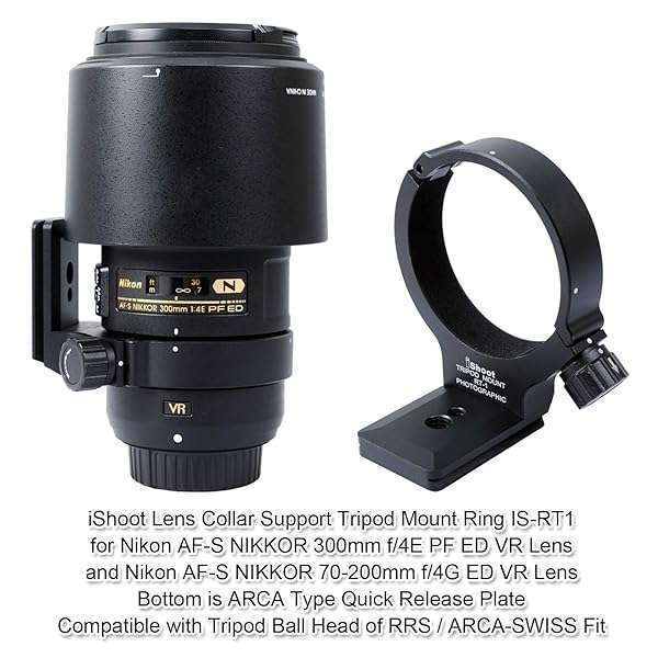 - iShoot Improved Lens Collar Tripod Mount Ring for Nikon RT-1 Nikkor AF-S 300mm F/4E PF ED VR & AF-S 70-200mm F/4G ED VR, Bottom Quick Release Plate Feature Compatible with Arca-Swiss 39mm Fit Ballh...- The lens support is tailor-made for Nikon AF-S NIKKOR 300mm f/4E PF ED VR Lens and Nikon AF-S NIKKOR 70-200mm f/4G ED VR Lens;