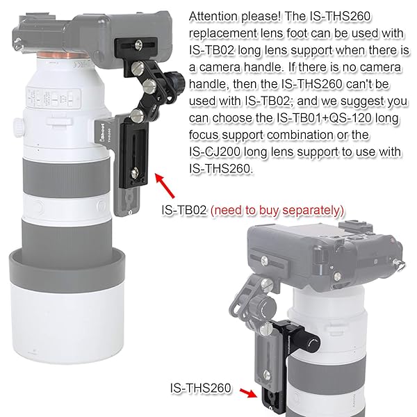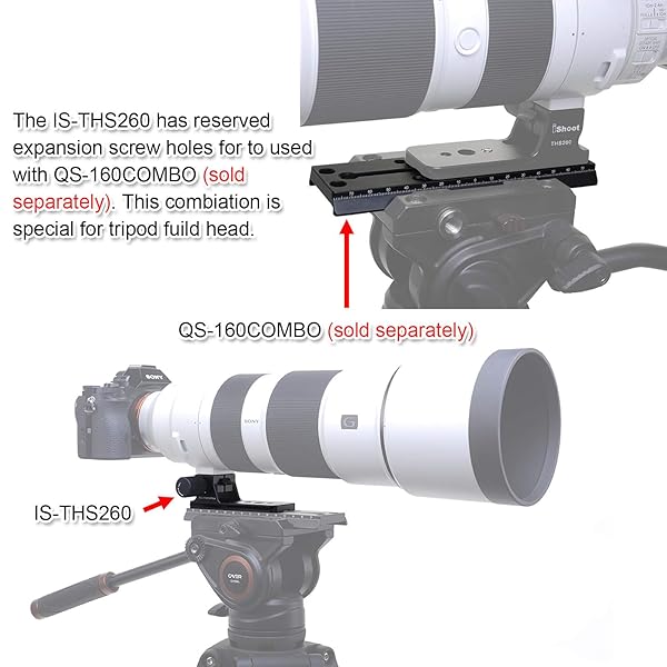 - iShoot Replacement Lens Foot IS-THS260 for Sony FE 200-600mm f/5.6-6.3 G OSS Super Telephoto Zoom E-Mount Lens SEL200600G - Arca-Swiss Style - Built-in 105mm Length Quick Release Plate provides rel...- The lens replacement foot is tailor-made for Sony FE 200-600mm f/5.6-6.3 G OSS Lens; the net weight is about 100g;
