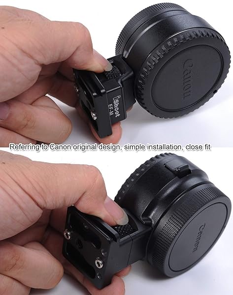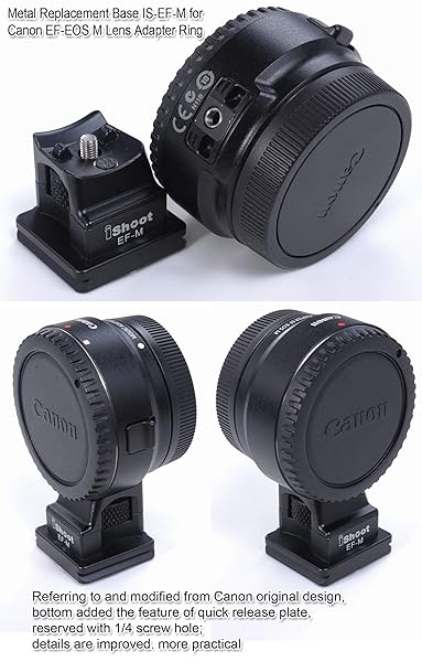 - iShoot Tripod Mount Ring Base Lens Collar Foot Replacement Stand for Canon EF-EOS M Camera EOS-M EF-S Lens Mount Adapter Ring, Bottom is Quick Release Plate Compatible with Arca-Swiss Fit Ball Head offers reliable performance and quality- 1. The lens collar foot is tailor-made for Canon EF-EOS M Mirrorless Camera Lens Adapter Ring, can't be used for other lenses;