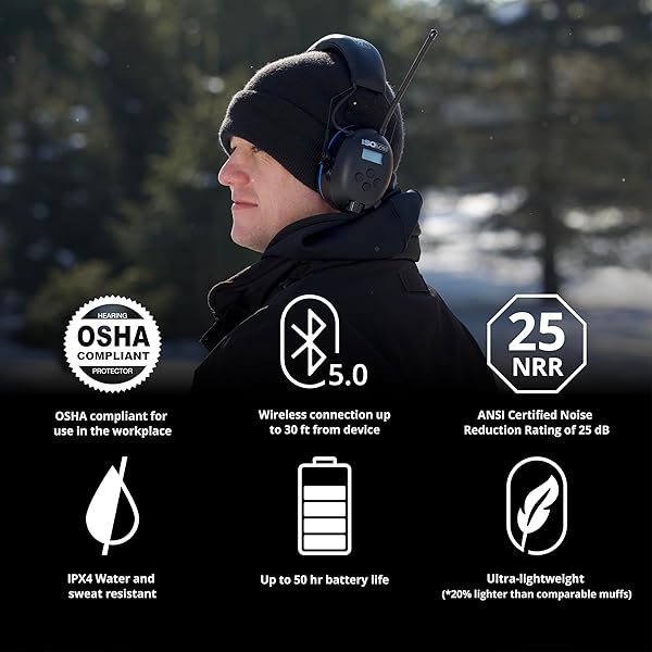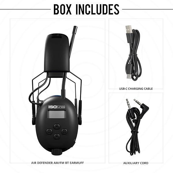 - ISOtunes AIR DEFENDER AM/FM + BT Earmuffs: Comfortable Wireless Hearing Protection with AM/FM Radio Tuner and Bluetooth with Rechargable Battery with reliable performance and quality- NOISE ISOLATING HEARING SAFETY: ANSI-certified 25 dB NRR rating to limit hearing damage in loud work environments.- SAFEMAX TECHNOLOGY: 85 dB volume limiter ensures that your music is always at a safe listening level.- MAXIMUM COMFORT: 20% lighter than other ISOtunes earmuffs with memor