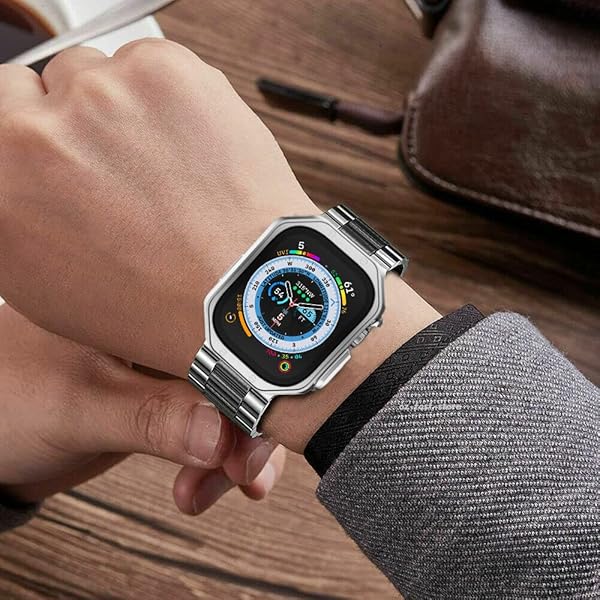 - iTecFree for Apple Watch Ultra 3 Metal Band with Case 49mm,Stainless Steel Bands Metal Chain Bracelet Wrist Strap and TPU Soft Rugged Case for iWatch Ultra 1 2 3(49mm, Silver/Black) with reliable performance and quality- COMPATIBLE MODEL:For apple watch band metal chain bracelet wrist strap with TPU case.Compatible with apple watch Ultra 3/2/1 49mm.Designed with premium materials, suitable for both men and women whose wrist size among 6.5-8.5 inches(16.5-21.5cm).Elegant appearance