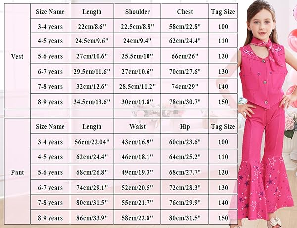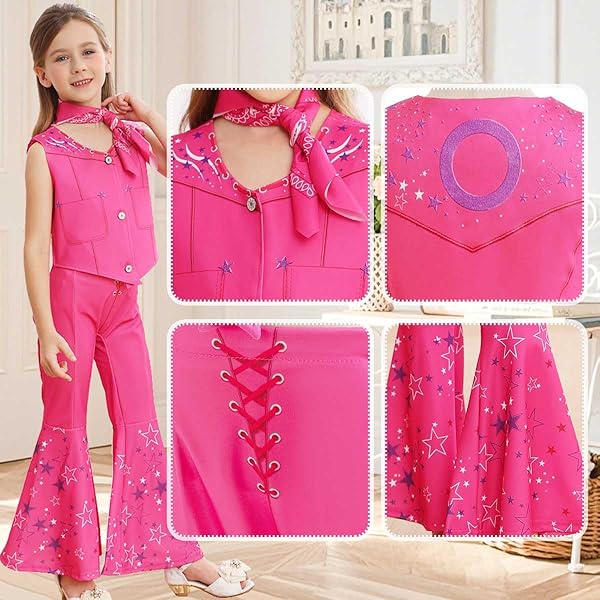 - iTVTi Cowgirl Costume Girls Hot Pink Kids Disco Outfits Movie Dress up for Halloween Birthday Party Cosplay, 7-8 Years (Tag 140) offers reliable performance and quality- Cowgirls Set: This outfit includes a pink cowgirl vest, a pair of pink Flared pants and a pink scarf, the Flared pants are decorated with a star pattern. The perfect cowgirl outfit so your child will look like a cowgirl from the disco era of the 70s or 80s
