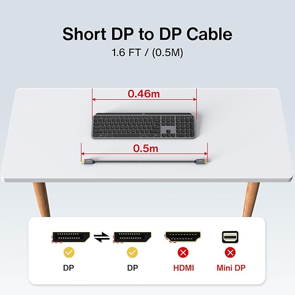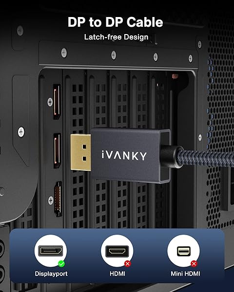 - IVANKY 1.6ft/0.5M DisplayPort Cable, Short DP Cable for Gaming Monitor, TV, PC, Laptop and More, 4K@60Hz, 2K@144Hz, 2K@165Hz, Nylon Braided High Speed DisplayPort 1.2 offers reliable performance and quality- Flicker-free ExperienceiVANKY 1.6ft/0.5M Short DisplayPort Cable is good for video streaming or gaming; 2K@165Hz refresh rate reduces flicker to give you a really comfortable gaming experience and it also supports DP, DP++, and DisplayPort++; NOT compatible with HDMI