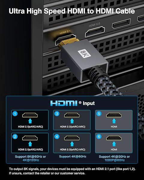 - IVANKY Short 8K HDMI Cable 1 Foot/0.3M, High Speed HDMI 2.1 Cable, Supoort [4K@120Hz 8K@60Hz, HDR 10, 3D, HDCP 2.3, eARC], Braided HDMI Cord, Compatible with UHD TV, PS5, Xbox, Blu-ray, Monitor - 1FT offers reliable performance and quality