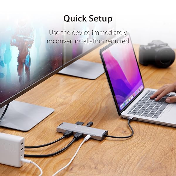 * j5create USB C 4K Triple Display Hub - 4K HDMI x2, 4K DP, 2 USB-A and USB-C 10Gbps, PD 100W, Ethernet, SD 4.0 Card Reader | for XPS, Surface Pro (JCD397): create a dual or triple 4k workstation with two hdmi and a displayport output on compatible usb-c laptops with displayport 1.4 and multi-stream transport (mst) * Extending one display up to 3840 x 2160 @ 60 * Easily switch to a higher refresh rate of 2560 x 1440 @ 144 via HDMI or 1920 x 1080 @ 240 via DP Port to enjoy your gaming under