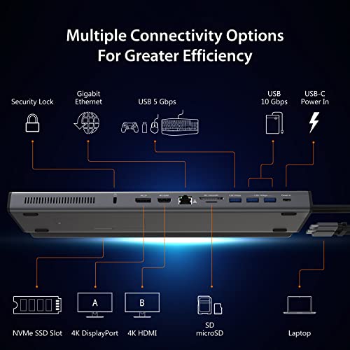 j5create USB C Dual 4K Docking Station for MacBook Pro - 12-in-1, 100W PD, HDMI, DisplayPort, 10Gbps USB-A, M.2 SSD Slot