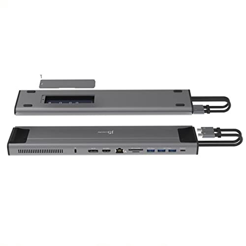 * j5create USB C Dual 4K 60Hz Display Docking Station (12-in-1), Built-in M.2 SSD Slot, HDMI, DisplayPort, 10Gbps USB-A, Card Reader, PD 100W, Ethernet, for 2021 MacBook Pro (JCD552): dual 4k 60 hz displays supports extended dual 4k displays (hdmi & displayport) on intel macbook pro and macbook air * Supports single display via HDMI on other USB-C compatible laptops connected via one USB-C port * Macs with M1 chip only supports 1 display * Macs with M2 chip only supports 1 HDMI display * HIGH-