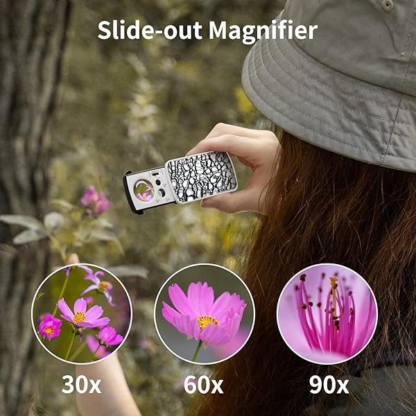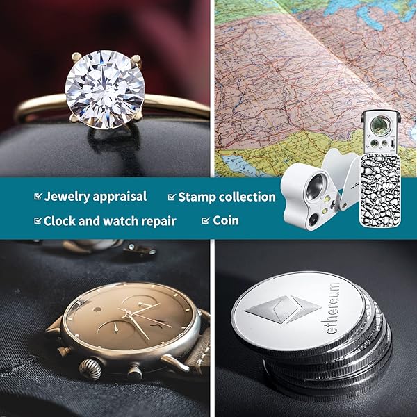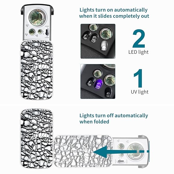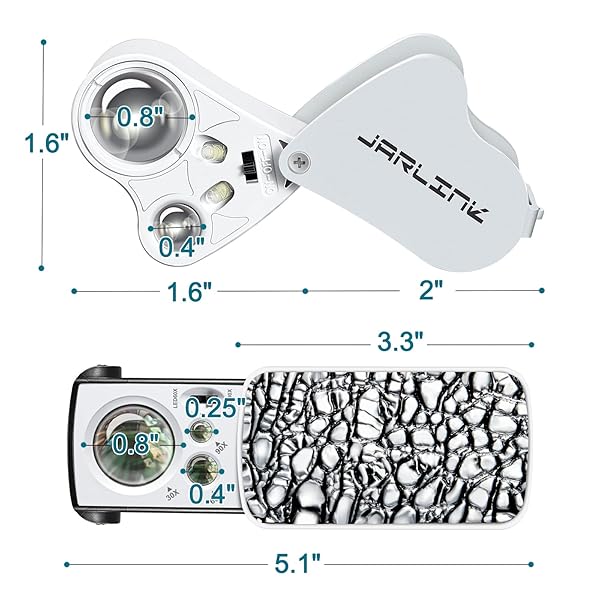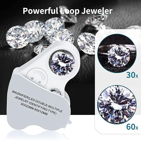 * JARLINK 2 Pack Jewelers Loupe, 30X 60X 90X Illuminated Jewelers Eye Loupe Magnifier and Magnifying Glass Loop with UV Black Light and Bright LED Light for Gems, Jewelry, Diamond, Coins, Stamps (White): what you get: the package contains 2 different styles of jewelry magnifiers * One with 3 different magnifications * Namely 30X 60X and 90X * An iron sheet * Another with 2 different magnifications