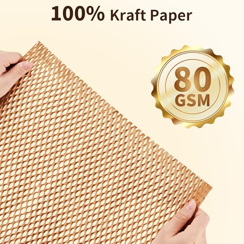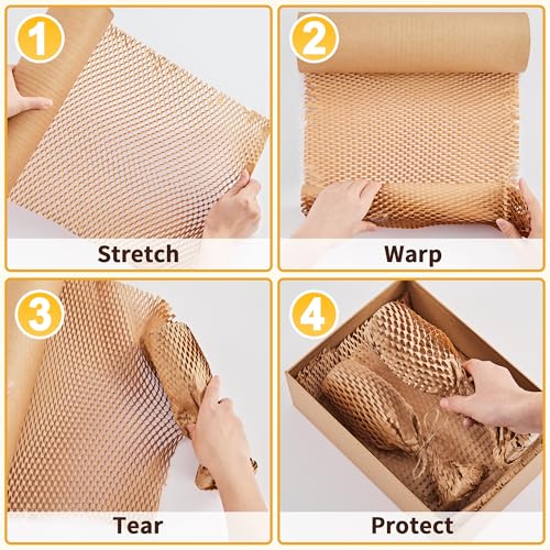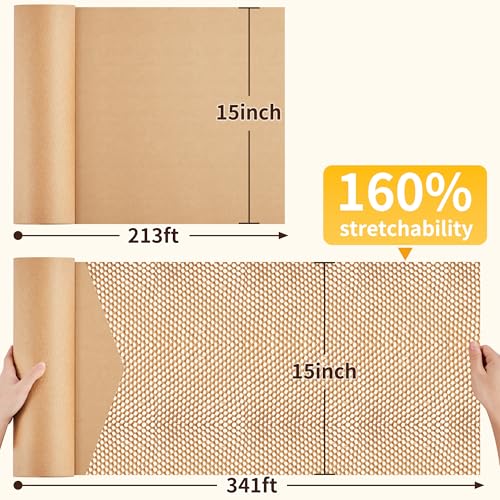 - JARLINK Honeycomb Packing Paper, 15"x 213' Bubble Packing Wrap for Packing/Shipping/Moving, Eco-Friendly Bubble Packing Paper Wrapping Roll, Recyclable Moving Supplies With 20 Fragile Sticker Labels with reliable performance and quality- Space Saving Honeycomb Packing Paper: This 15''x213' honeycomb cushioning wrap roll can stretch up to an impressive 160%, extending from 213 feet to 341 feet. Lightweight, portable, and save space. 20 fragile sticker labels are provided to keep yo