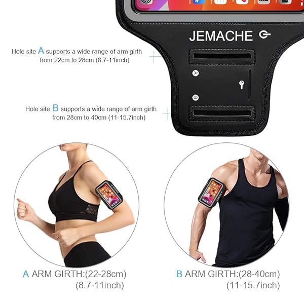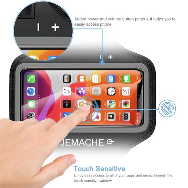 - iPhone 17 16 Pro Armband, JEMACHE Gym Workouts Running Arm Band for iPhone 17/16/15/14/13/12 Pro (Black): reliable performance and quality- Premium Materials : Made of stretch resistant neoprene material, this- Special Designed : With an obvious power and volume button pattern- Delicate Cutouts : There are three cutout holes behind the armband- Touch Sensitive : Enjoy the full use of your phone through the