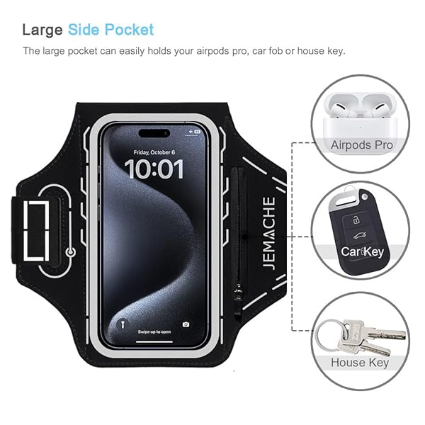 - Armband for iPhone Pro Max 17 16 15 14 13 12 Plus, Air with Airpods Holder, Gym Workouts Running Phone Arm Band (Black): reliable performance and quality- Custom Design: The small part at the end of the band prevents your- Special Features: Built-in key pocket stores your house key while- Premium Materials: After hundreds of tests, we choose the most- Widely Adjustable: Adjustable band supports a wide range of arm