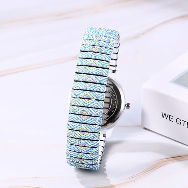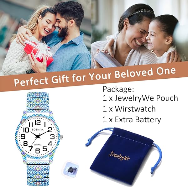 - JewelryWe Womens Stretch Band Watches: Easy Reader Analog Quartz Elastic Watch Casual Floral Expansion Band Wristwatch with reliable performance and quality- PRECISE -- Easy-to-Read Dial with Full Bold Arabic Numerals. Good for middle-aged and old people. quartz movement provides precise and accurate time keeping.- HIGH QUALITY -- Polished Metal Expansion Band. Stretchable watchband for adjustable size. Easy to put on and take off. Fits wrists size from 18cm-22cm/7.08in-8.6