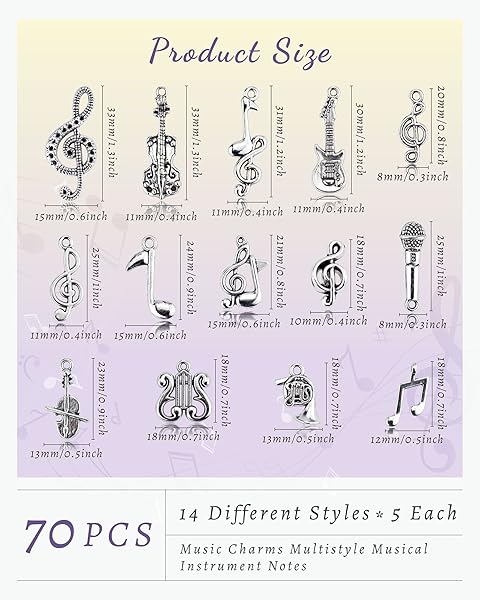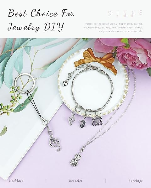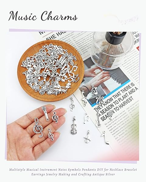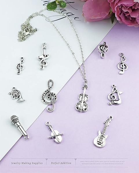 - JIALEEY Music Charms Multistyle Musical Instrument Notes Symbols Pendants DIY for Necklace Bracelet Earrings Jewelry Making and Crafting Antique Silver 70PCS offers reliable performance and quality- Material: Alloy, 100% brand new and high quality. Quantity: Set of 70 (14 different styles, 5 each). Size: 0.79" - 1.25" (20 - 32 mm)