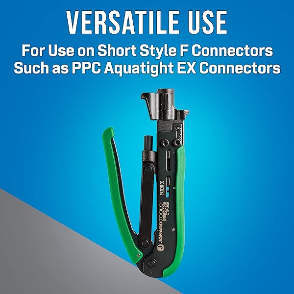 - Jonard Tools CTF-300, Compression Tool for Coaxial Cable Short F Connector provides reliable performance and quality- VERSATILE USE: Designed for use on short style F connectors such as PPC Aquatight EX connectors. The tool is ideal for installing CATV network cables.- EASY OPERATION: Rotatable to accommodate various connectors such as RG6 and RG11 quickly and easily with a fixed design so no adjustments are needed