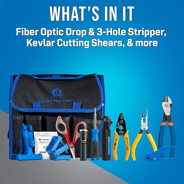 * Jonard Tools TK-121 Fiber Prep Kit+ - 12 Piece Premium Fiber Optic Cable Access and Termination Tools set with Stripping, Ringing, And Cutting Tools: featuring our most popular slitting * Ringing * Stripping * And cutting tools * This Fiber Prep Kit+ provides a large array of tools needed to access and prepare fiber optic cables for termination