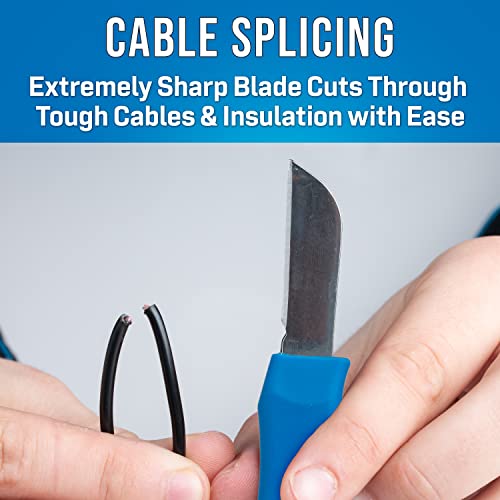 - Jonard Tools TK-400 3 Piece Splicers Kit with included Splicing Knife, Electrician's Scissors, and Leather Pouch provides reliable performance and quality- ERGONOMIC KNIFE: Inlcudes an ergonomic cable splicing knife with an extremely sharp cutlery-steel blade and non-slip handle- ELECTRICIAN'S SCISSORS: Included electrician's scissors are made from chrome vanadium steel and include two stripping notches and a scraper and file on one blade
