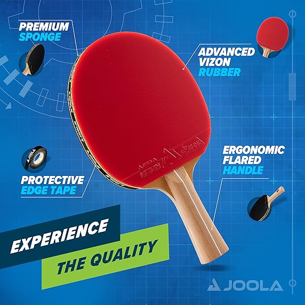 - JOOLA Omega Control - Tournament Performance Ping Pong Paddle - Table Tennis Racket for Advanced Training with Flared Handle - Includes Vizon Table Tennis Rubber - Designed for Control offers reliable performance and quality- JOOLA - AN OLYMPIC TABLE TENNIS BRAND TRUSTED FOR 60+ YEARS: Launched in the 1950s, JOOLA has been the proud sponsor of the biggest tournaments in the world, Including the Olympics, World Championships, and US Open. Equipment designed for all levels