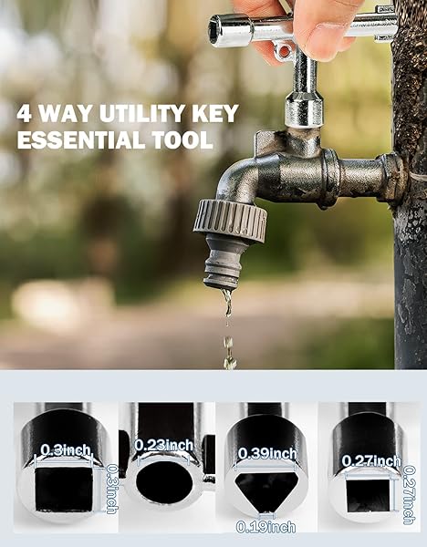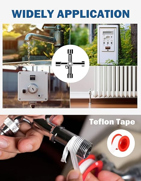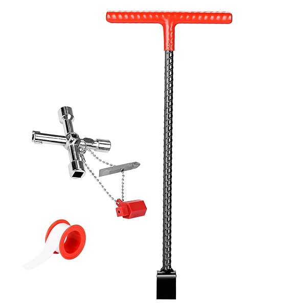 - JOYTUTUS 17 Inch Multifunctional Water Meter Tool with 4-Way Key & Teflon Tape, T-Handle Valve Key with reliable performance and quality- T-Handle Design: The T-handle type will be more labor-saving to use, a layer of non-slip vinyl covers the T-zone, which is comfortable to touch and not easy to fall off- Durable and sturdy : Our water meter key is made of heavy duty steel, ensuring it is strong enough to handle even the toughest of jobs- Easy to use: Our water shut