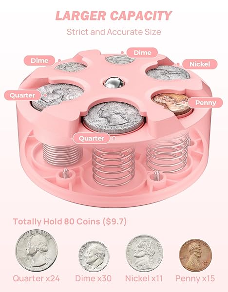 - JOYTUTUS Universal Coin Holder, Large Capacity Coin Holder for Car, Portable Car Change Holder Coin Organizer, Car Trucks Accessories, Coin Sorter for Car & Wallet & Pocket,Pink with reliable performance and quality- Large Capacity: Our coin holder is designed specifically for American coins with 6 slots, including 2 for Quarters, 2 for Dimes, 1 for Nickels, and 1 for Pennies. It can hold up to 14 Quarters, 13 Nickels, 17 Pennies, and 17 Dimes, making it perfect for your everyday