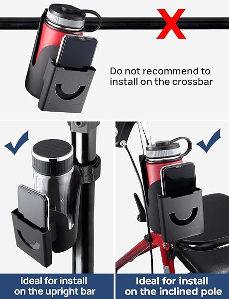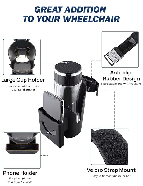 - JOYTUTUS Cup Holder for Wheelchair, 2 in 1 Water Bottle Holder and Phone Bracket, Universal Drink Cup Holder for Walker, Rollator, Stroller, Scooter with reliable performance and quality- 2 In 1 Cup Holder: Only for 2.5"-3.5" diameter of the beverage cup and 3.2" width 0.6" thickness phoneIt is recommended to place the phone without a phone case. Upgrade 2 in 1 wheelchair drink holder with a phone bracket. Buy it you have both a cup holder and a phone holder. You can enjoy your be