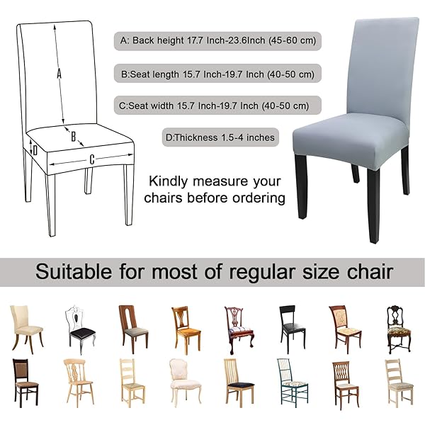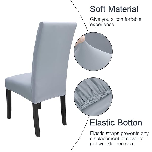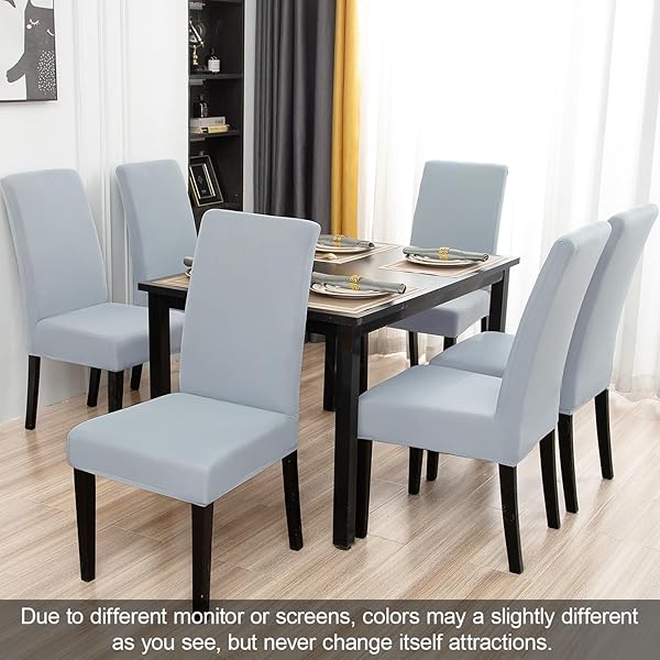 - JQinHome 6 Pcs Dining Chair Slipcover,High Stretch Removable Washable Chair Seat Protector Cover for Home Party Hotel Wedding Ceremony(Light Grey) offers reliable performance and quality- High Quality of Chair Cover- This dining chair slipcovers are made of polyester blend and stretchy spandex fabric, soft, comfortable and wrinkle resistant, no ironing required;Stretchable Material,stretch that recovers quickly,secure fit with sewn-in elastic hem