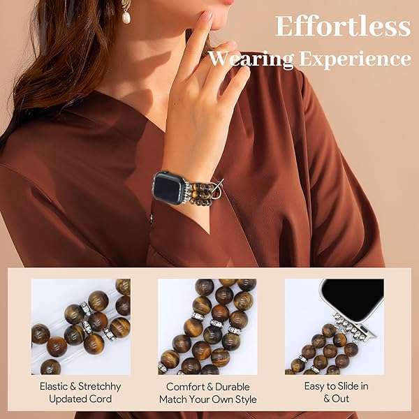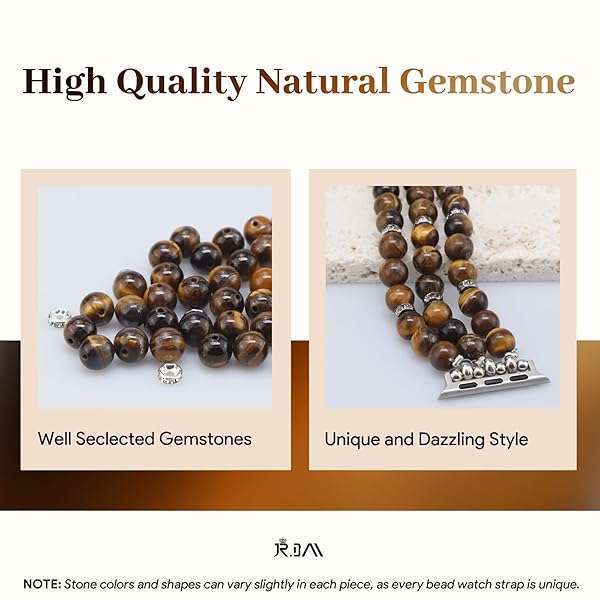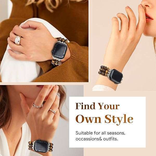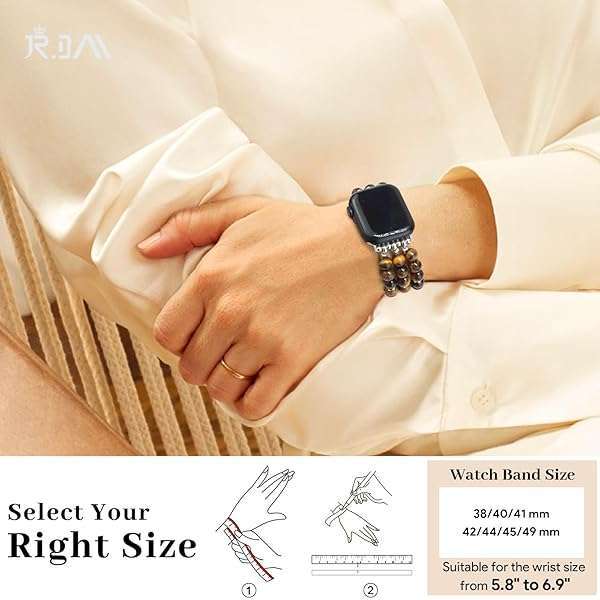 - JR.DM Natural Stone Beaded-Bands Women Compatible with Apple Watch Series 11 10 9 8 7 6 5 4 SE 3 2 1 Fashion Stretch Handmade Bracelet Fancy Boho Elastic Strap for iWatch 38/40/41/42mm(S10/11) Gift...- Natural Gemstone Beaded Watch Band: Beautiful and unique handmade natural stones beaded watch band for Apple Watch, suitable for all occasions, outfits, holidays, and all seasons. Please note every...