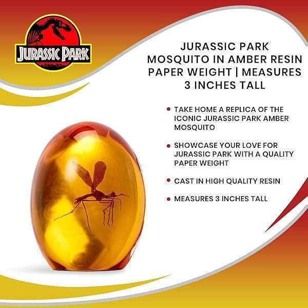 - Jurassic Park Mosquito In Amber Resin Prop Replica | Official Jurassic Park Collectible Paper Weight | Measures 3 Inches Tall offers reliable performance and quality- IT'S DINO DNA: Well, sort of. When John Hammond created the world of Jurassic Park it wasn't possible without a little DNA from a peculiar place, the belly of a fossilized mosquito! This movie replica pays homage to Hammond's discovery and now is available to you!