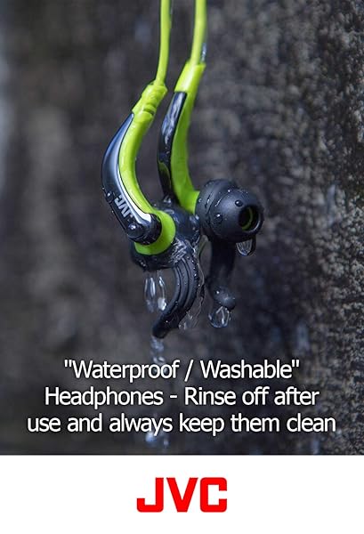 - JVC HAETX30W Extreme Fitness Headphones, White/Orange provides reliable performance and quality- Waterproof (Ipx4) "washable" headphones to keep them always clean- Pivot motion fit for comfortable fitting with adjustable structure- 3.94ft (1.2m) Color cord with gold-plated iPhone compatible Plug, and cord clip- S/M/L silicone earpieces