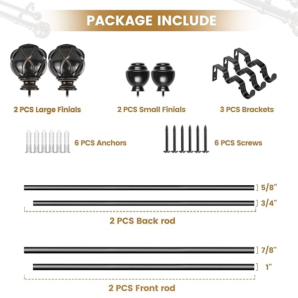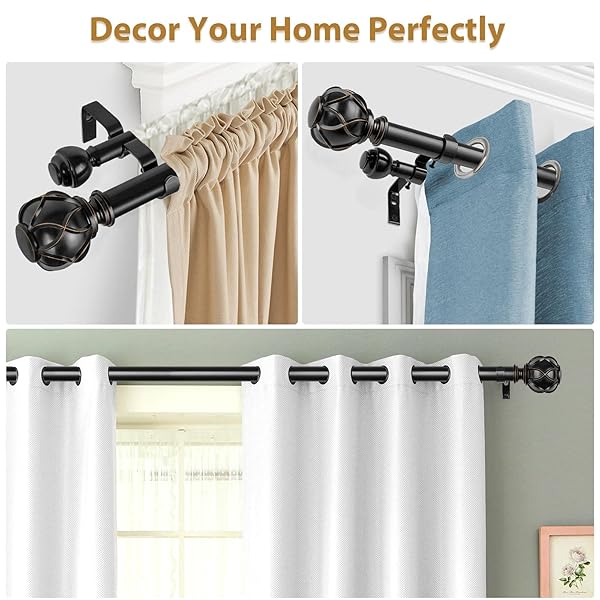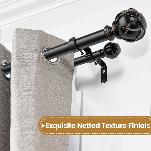 - KAMANINA 1 Inch Double Curtain Rods for Windows 36 to 72 Inches (3-6 Feet)Black Heavy Duty Double Curtain Rod, Telescoping Drapery Rod with Netted Texture Finials offers reliable performance and quality- Telescoping Double Curtain Rods: KAMANINA decorative curtain rod can extend from 36 to 72 inches easily to fit windows size from 24 to 68 inches, and support light to heavy weight curtains. Ideal for kitchen, bedroom, living room, nursery room, office or any other places